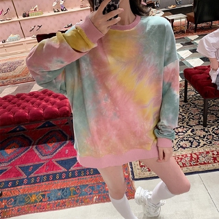 loose tie dye long sleeve printed round neck T Shirt baju Sumber Gambar : shopee.com.my
